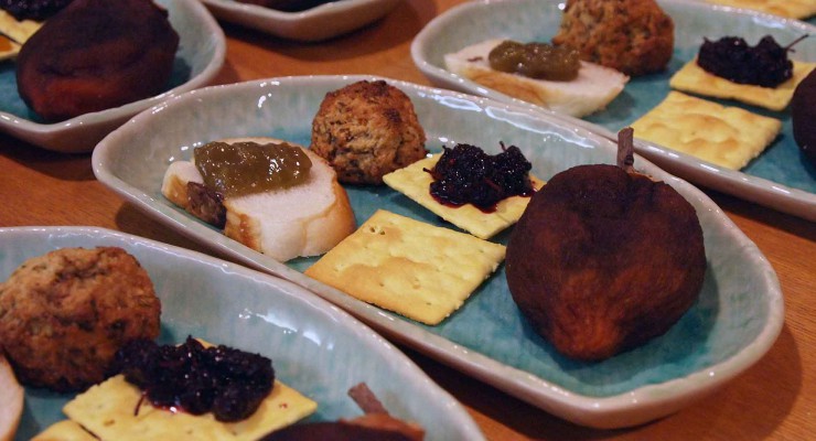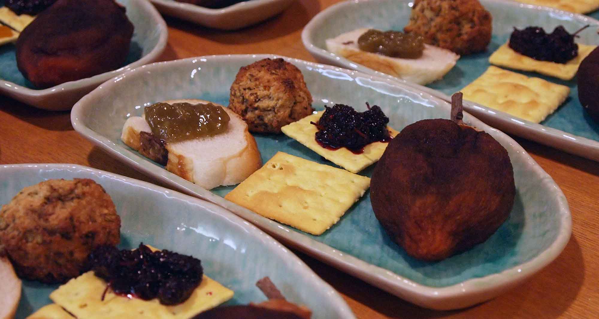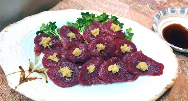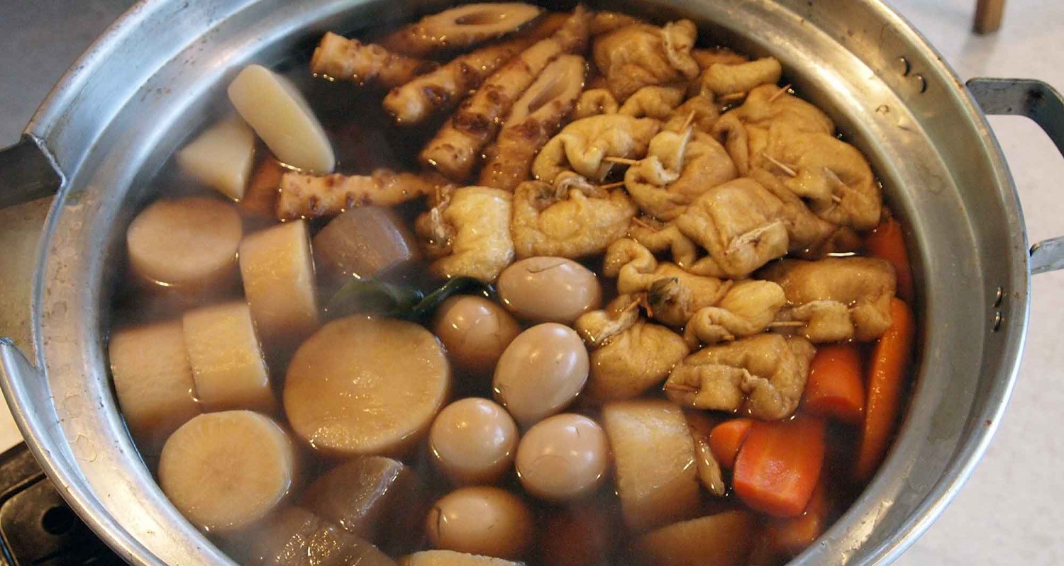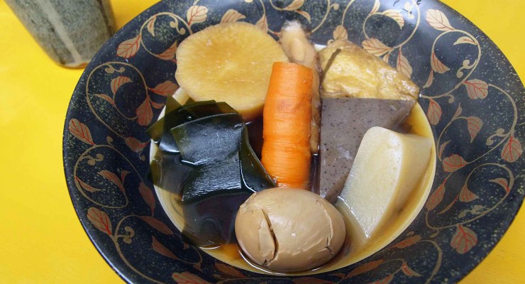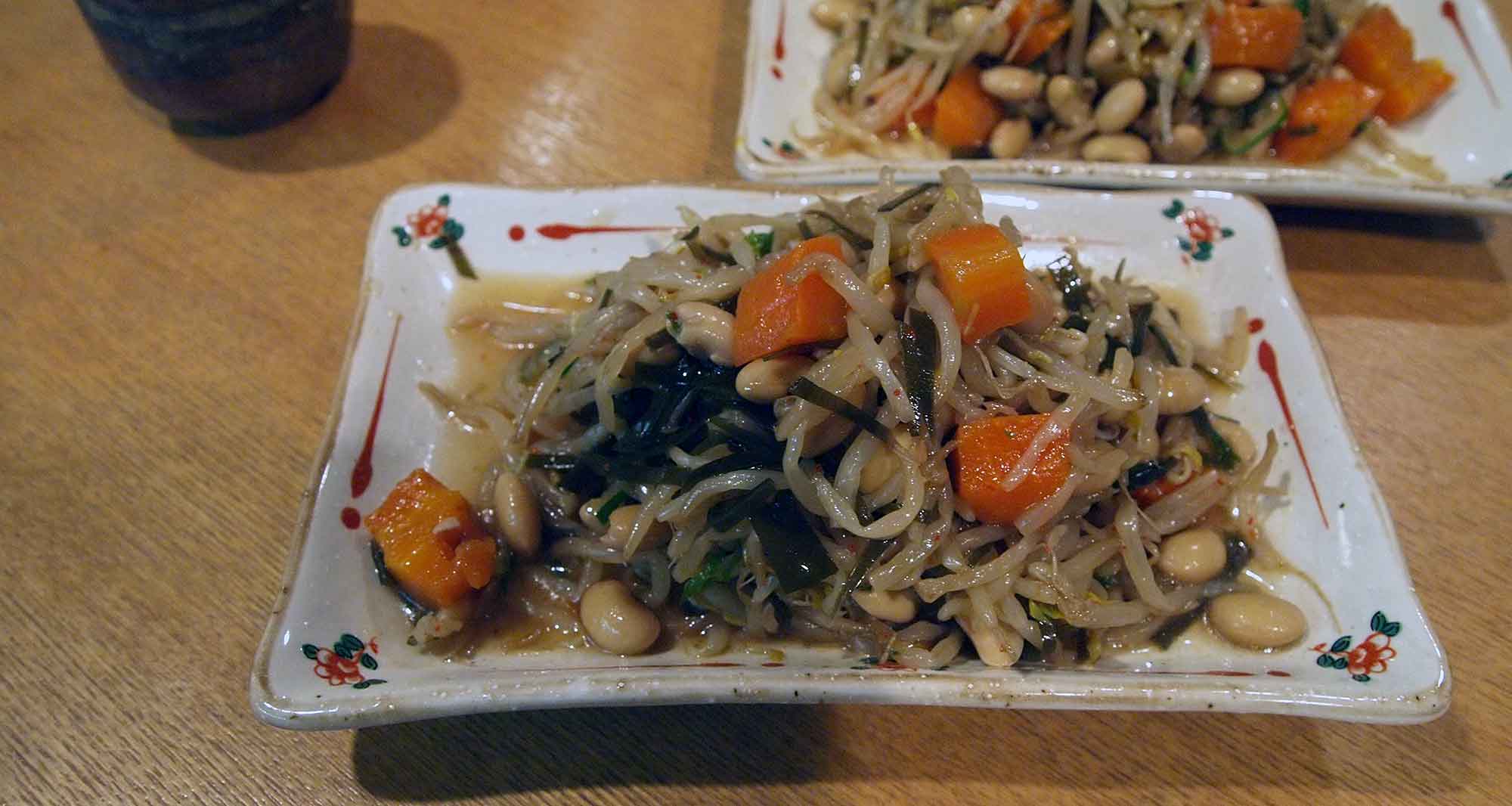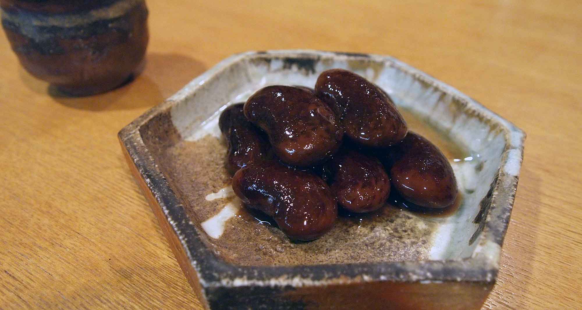 おでん・大豆とモヤシの中華風和え物・おぼろ豆腐・おつまみ盛り合わせ・シカ刺し・エイヒレ鍋・デザート・花豆