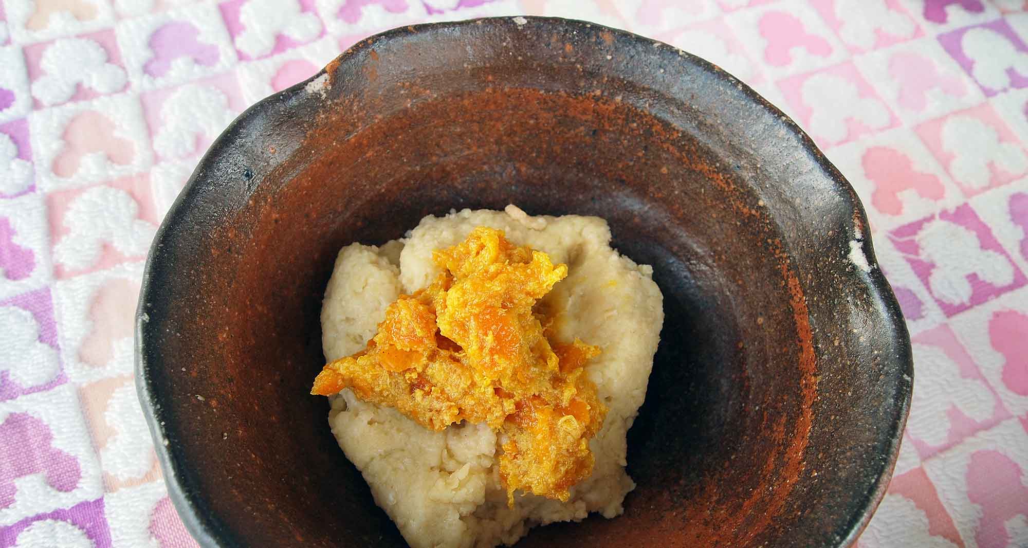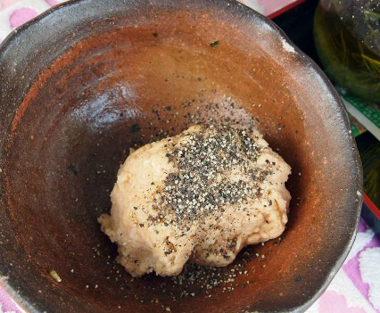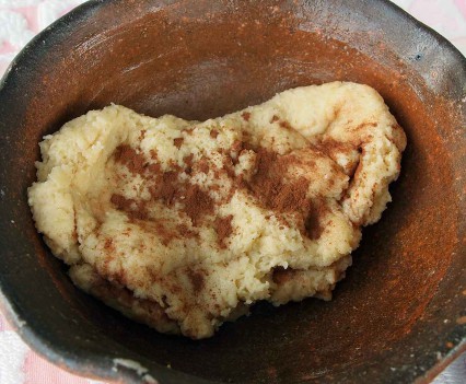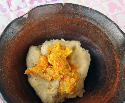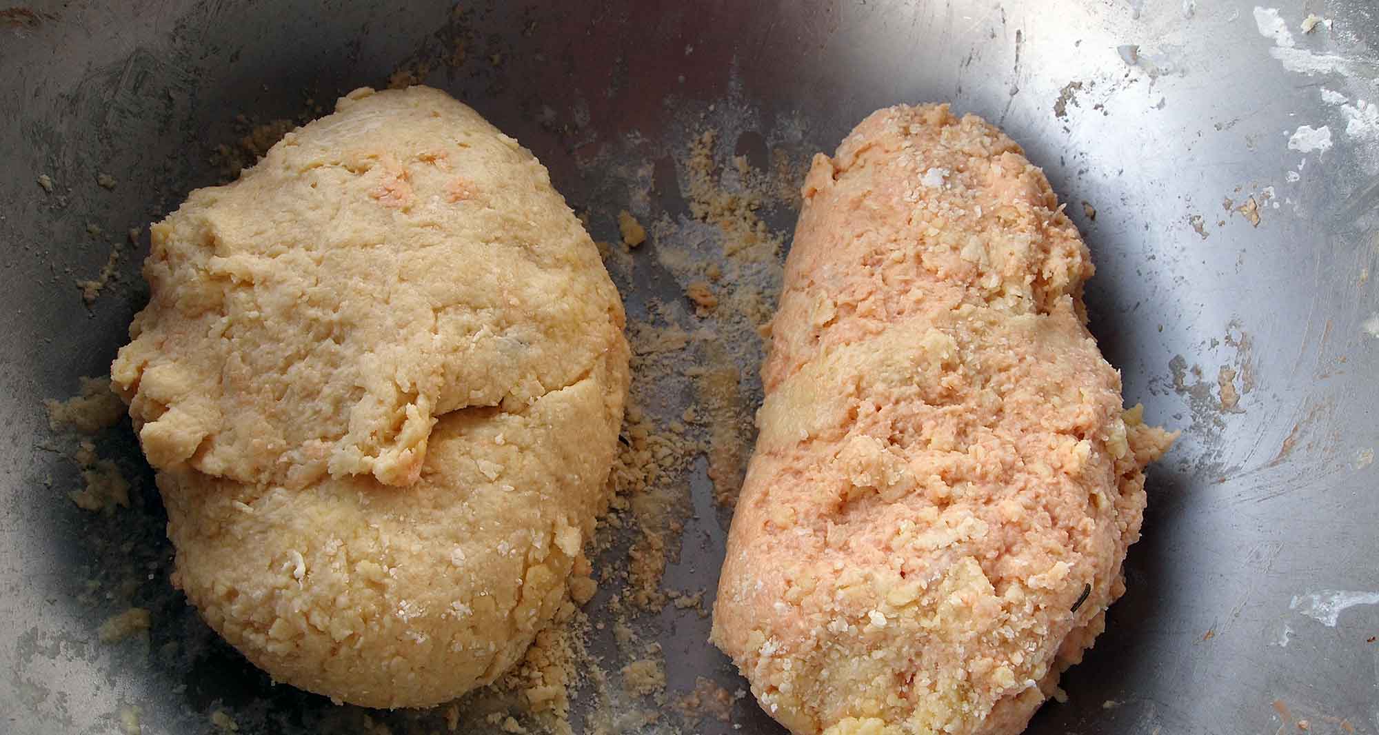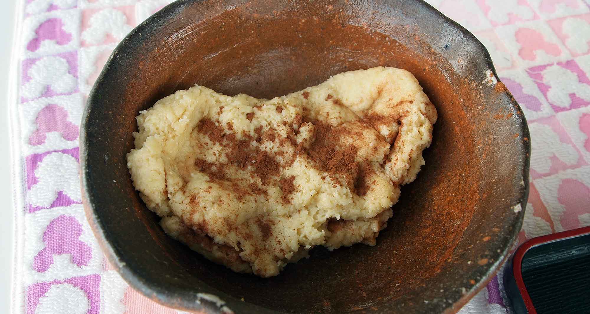 【練り込む材料は、基本生地1/8(だいたいの目分量)に、それぞれ加えます(練り込む材料はお好みで山椒・桜エビ・チョコなどでもOK)】