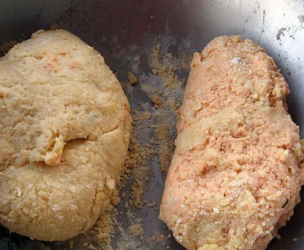 memo成形するとき、水分を含む材料を練り込んだ生地(おろし生姜等・・・)は柔らかくベタ付くので、