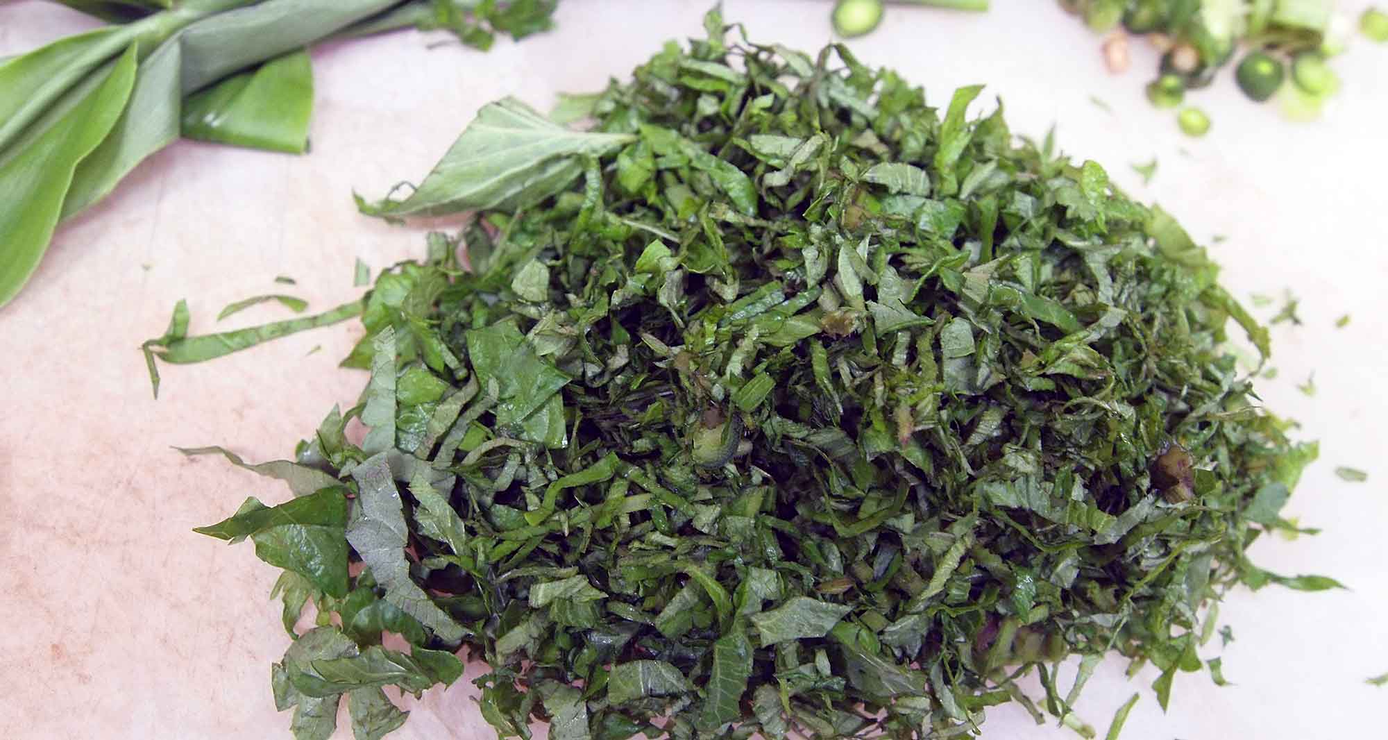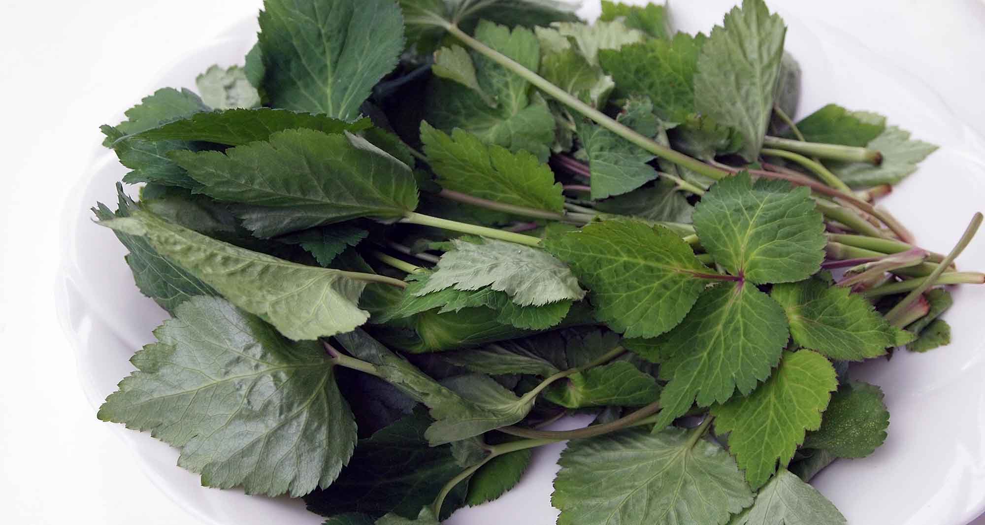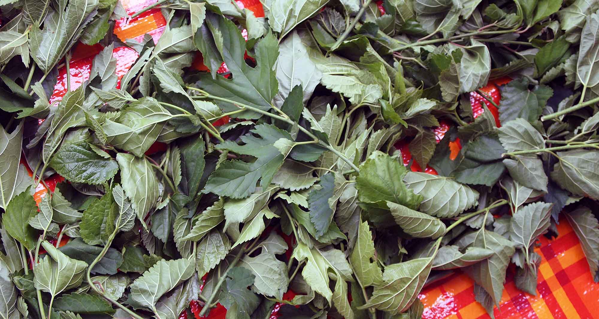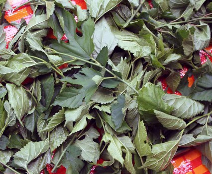 今日はミツバと、お茶用の『桑の葉』を収穫。