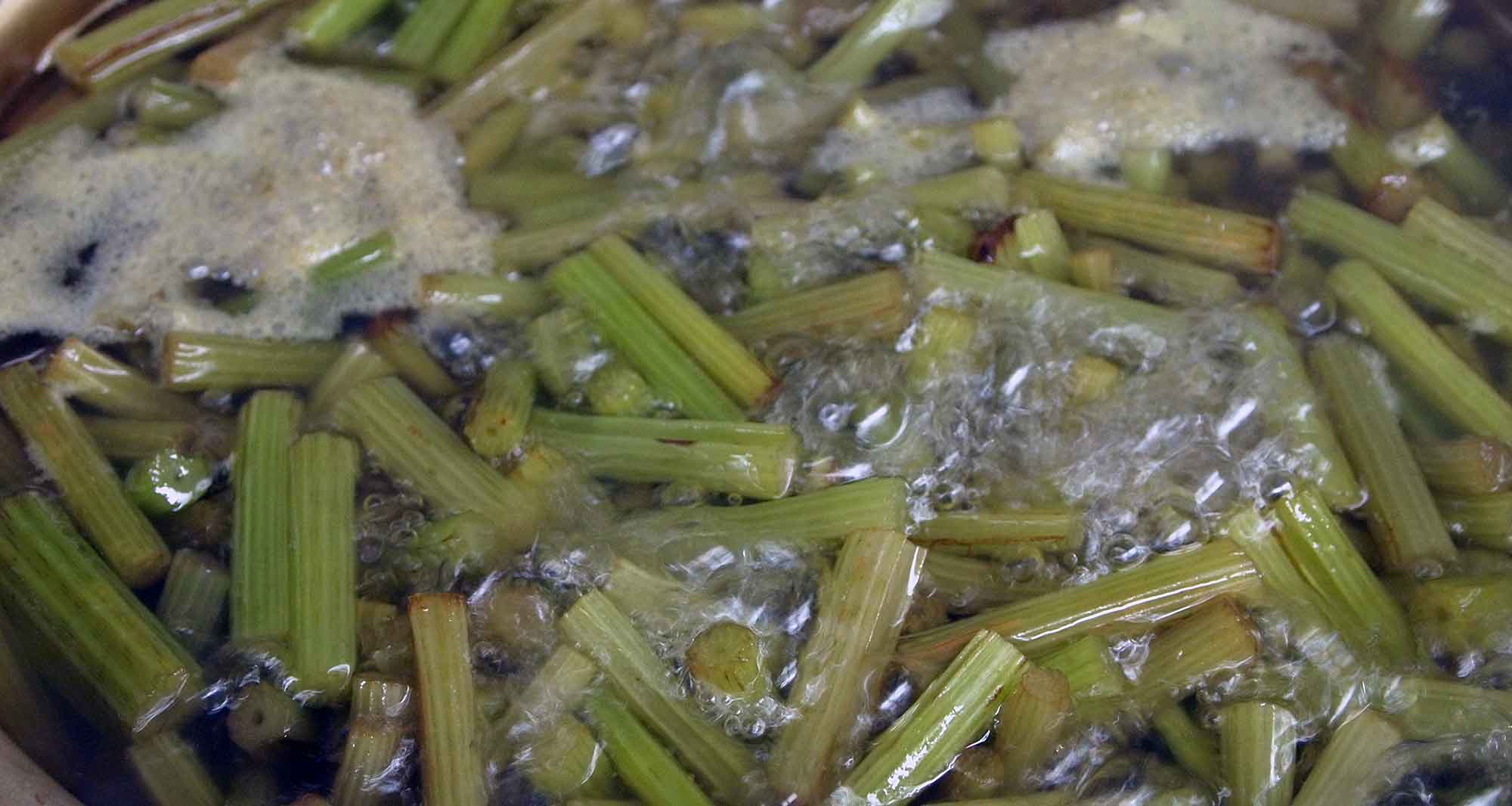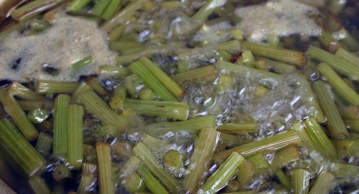 煮始めたら30分おきくらいに蕗を煮返し
