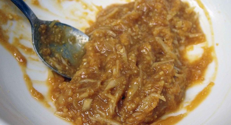 大葉と一緒に揉む目安はしんなりし水分が出る感じ迄。