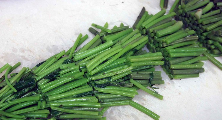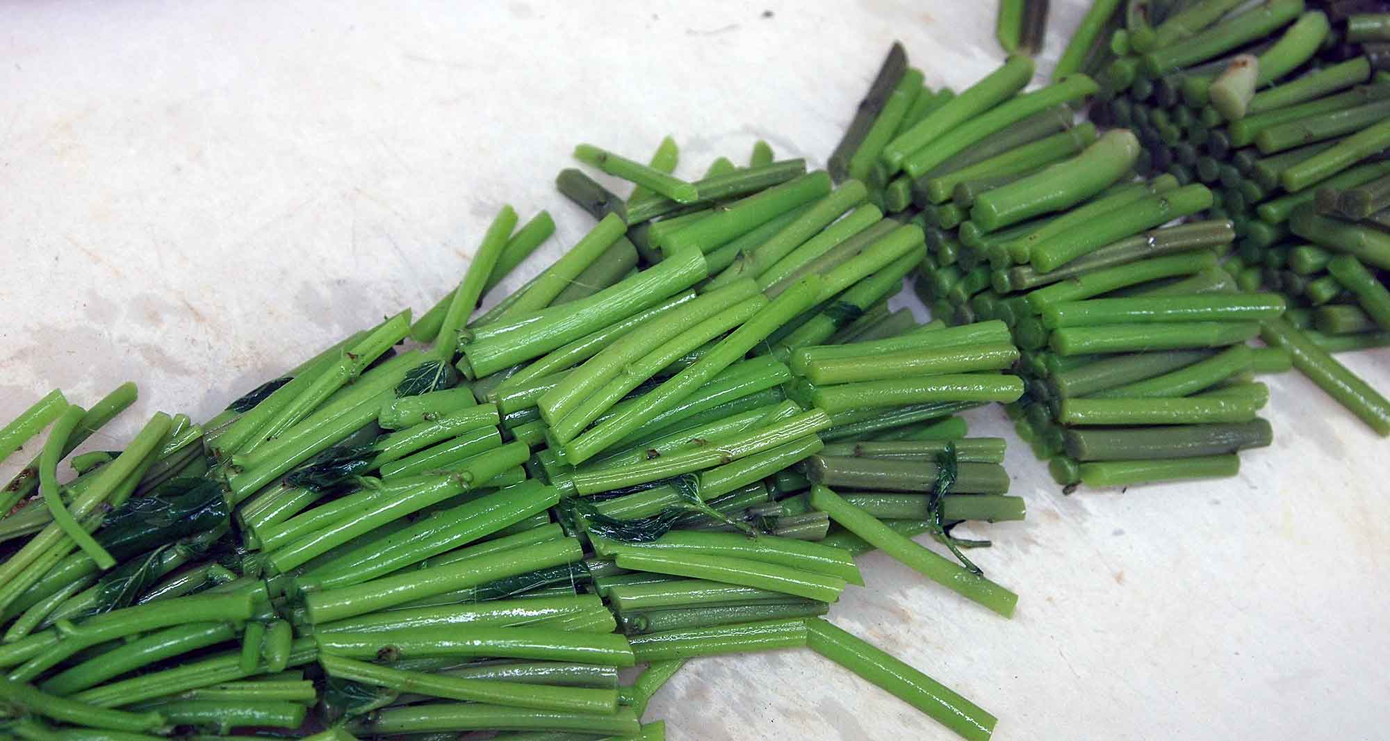 green_heart茗荷ダケは洗って、茎をそろえ根元から切りますが