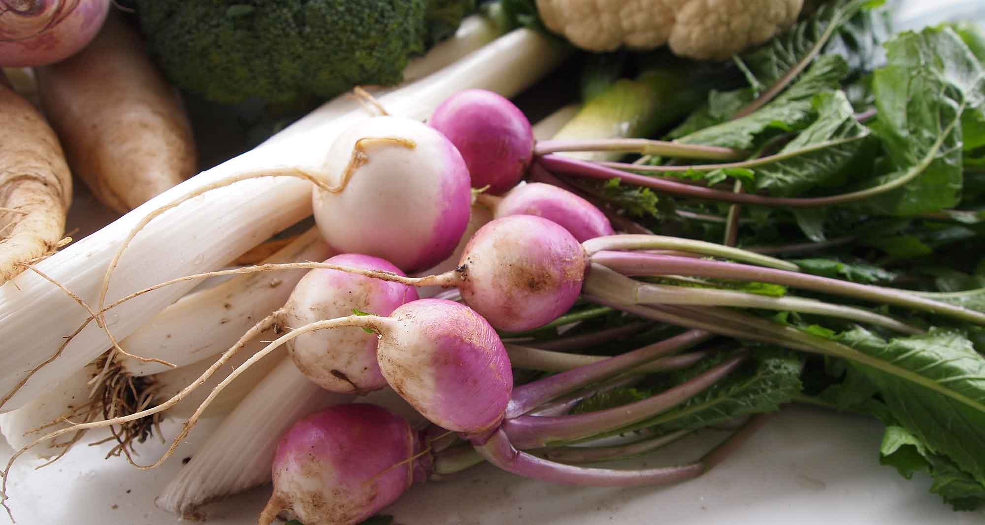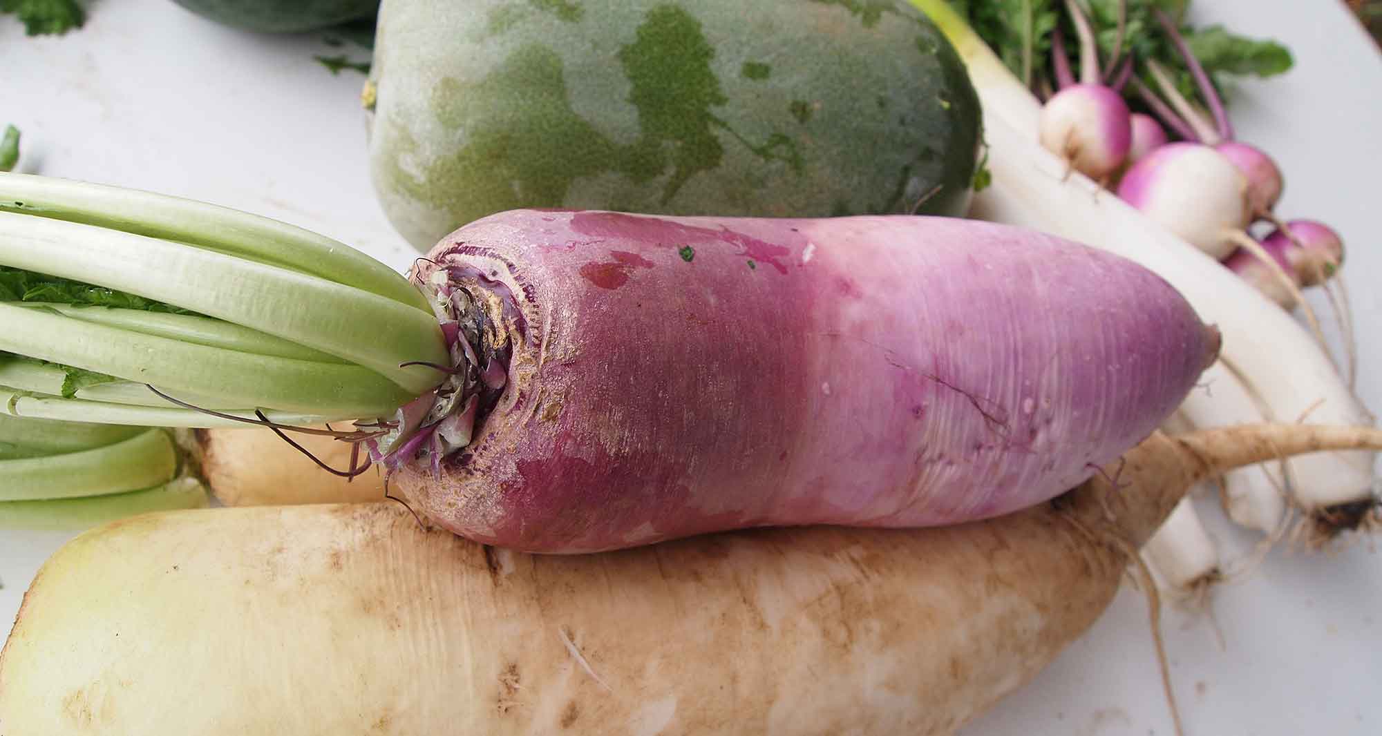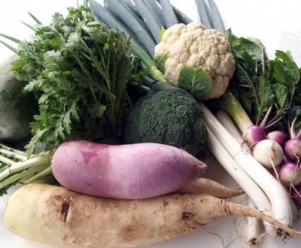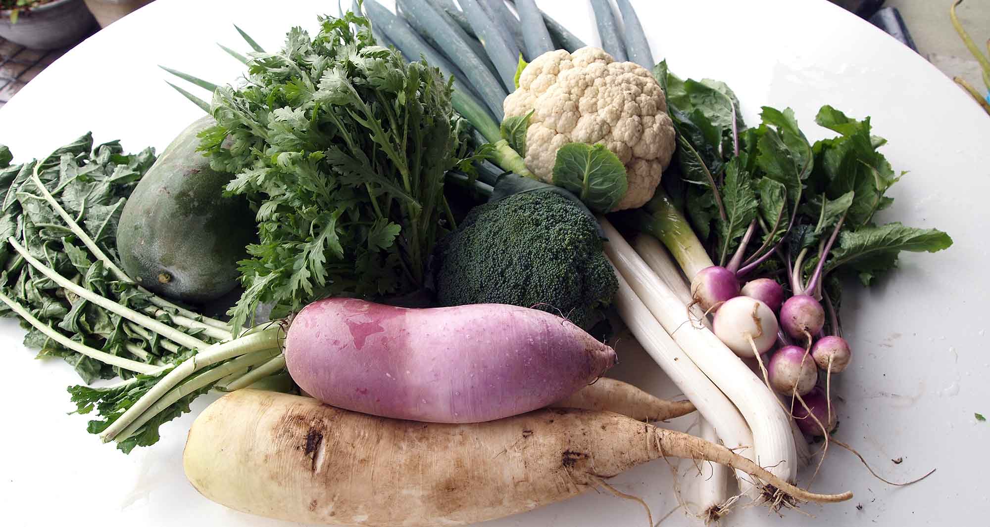 大根2種・赤蕪・春菊・水菜